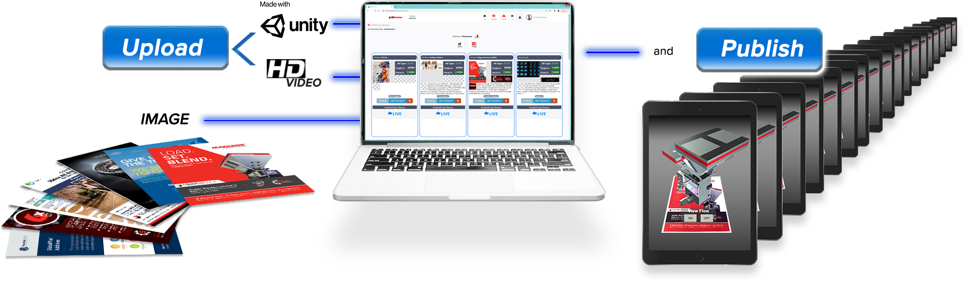 Automation of AR code, lets anyone upload a target image, Video or Unity 3D content and publish AR.
